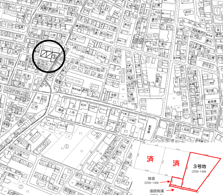 岡山県岡山市東区目黒町76-1外 2筆より分筆